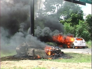 Veiculos queimados por manifestantes